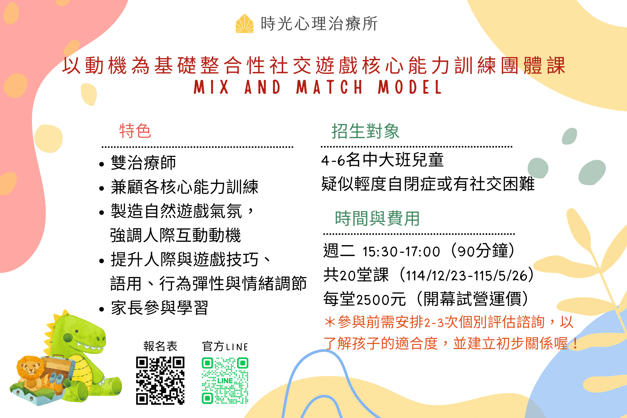 由兩位專業臨床心理師帶領,根據孩子的核心能力設計適當的活動。